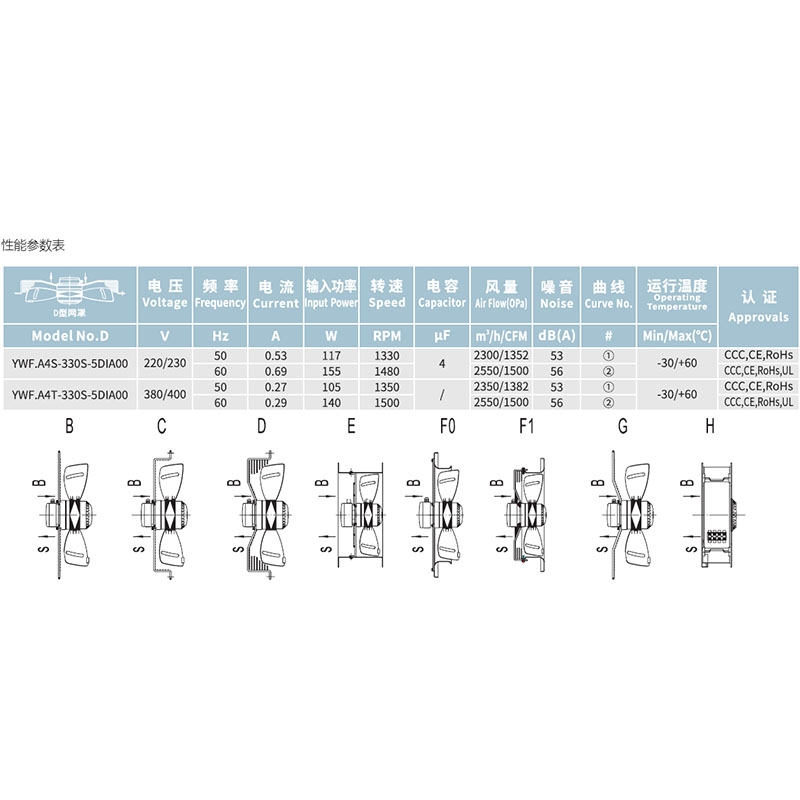 YWF.A4S-330S-5DIA00全新固定式抗震冷凝器蒸發器風機