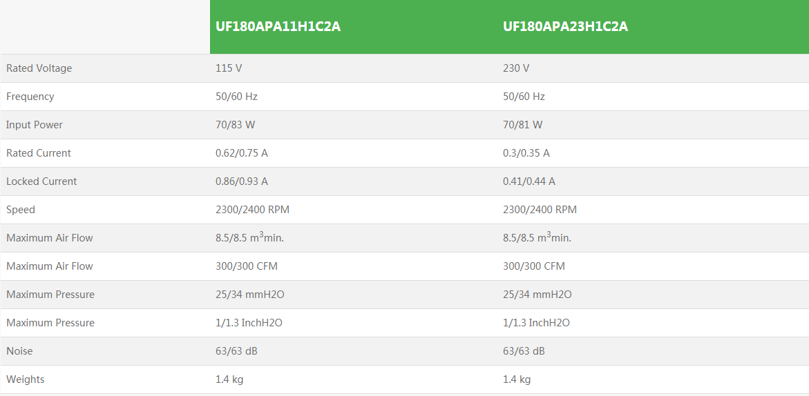UF180APA原裝全新臺灣進口fulltech福佑負離子凈化外轉子離心風機